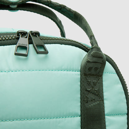 Composición: Poliester Medidas: Mini: 27 x 22 x 8 cm / Regular: 35 x 27 x 12 cm Capacidad: Mini: 4,75 lts / Regular: 11,34 lts Cierre: Plástico SBS Limpiar con paño húmedo y secar a la sombra.